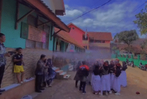 Yang membuat acara ini makin unik, prosesi penyemprotan air—yang biasa dilakukan menggunakan mobil pemadam kebakaran—kali ini cukup dengan setim alat penyemprot sederhana milik sekolah. Walau alatnya sederhana, semangat dan keceriaan para siswa tetap luar biasa.
